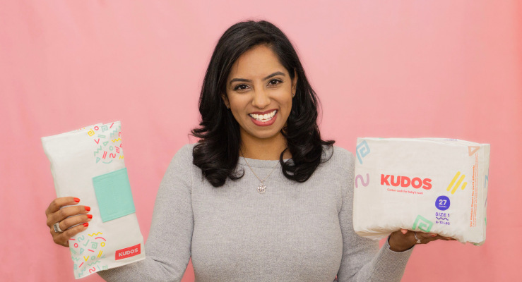 Co-founder and CEO Amrita Saigal says that Kudos is the first and only disposable baby diaper to earn the cotton natural seal from Cotton Inc. for having 100% cotton touching the baby’s skin instead of plastic. They’re also made with four times more plant-based materials than the top disposable diaper out there.